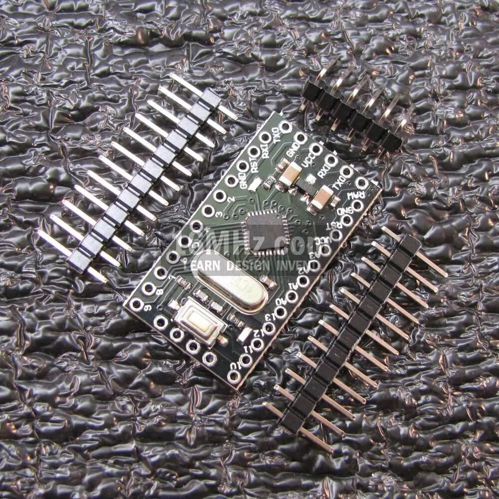 uino Pro Mini Atmega328P 16mhz 5V Ideal para projetos finais onde se deseja utilizar a plataforma arduino,com toda sua facilidade e comodidade,mas sem gastar muito, já que este tem as mesmas funçoes que o uno e nano,(sem conversor usb-TTL). Bastante pequeno,o que o torna ideal para uma infinidade de projetos,suporta auto reset, possui proteção de sobre corrente,leds indicadores de status ,Etc! Atenção: É necessário um conversor USB-TTL para fazer upload do código para o mesmo, ou um arduino uno. O uino uno sem o Atmega serve como conversor USB-TTL ino Pro Minié um microcontrolador baseado no ATMega328p que roda a 16Mhz e 5v. Possui 14 saídas/entradas digitais (das quais 6 podem ser usadas como saídas PWM), 8 entradas analógicas e botão de reset. O Pro Mini foi planejado para instalações semi-permanentes e acompanha 3 Barramento de Pinos que não estão soldados na placa, permitindo assim o uso de vários tipos de conectores e jumpers. Especificações: - Microcontrolador: ATmega328p (datasheet) - Tensão de Operação: 5v - Tensão de Entrada: 5-12v - Entradas e Saídas Digitais: 14 (das quais 6 podem ser usadas como saídas PWM) - Entradas Analógicas: 8 - Corrente DC de Operação: 40mA - Memória Flash: 32KB - SRAM: 1KB - EEPROM: 1KB - Velocidade de Clock: 16MHz - Dimensões: 33 x 18 x 6mm