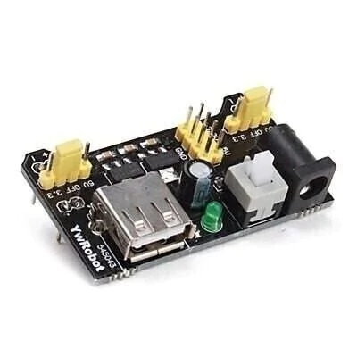 Fonte de alimentação 3.3V/5V para Protoboard (Arduino/PIC/AVR) Módulo de fonte de alimentação especialmente projetado para ser conectado a protoboard MB-102 ou compatível, com as seguintes especificações: Tensão de entrada 1: 6.5V ~ 12V (DC) /1A (plug P4 com positivo no centro) Tensão de entrada 2: Interface USB de micro PC/Notebook (5V/100mA) Tensão de saída: 3.3V e 5V, configurados por jumpers 2 saídas independentes controladas por jumper, possibilitando que cada uma delas tenha:0V, 3.3V ou 5V Encaixa perfeitamente as laterais do protoboard Chave liga/desliga com indicação por LED